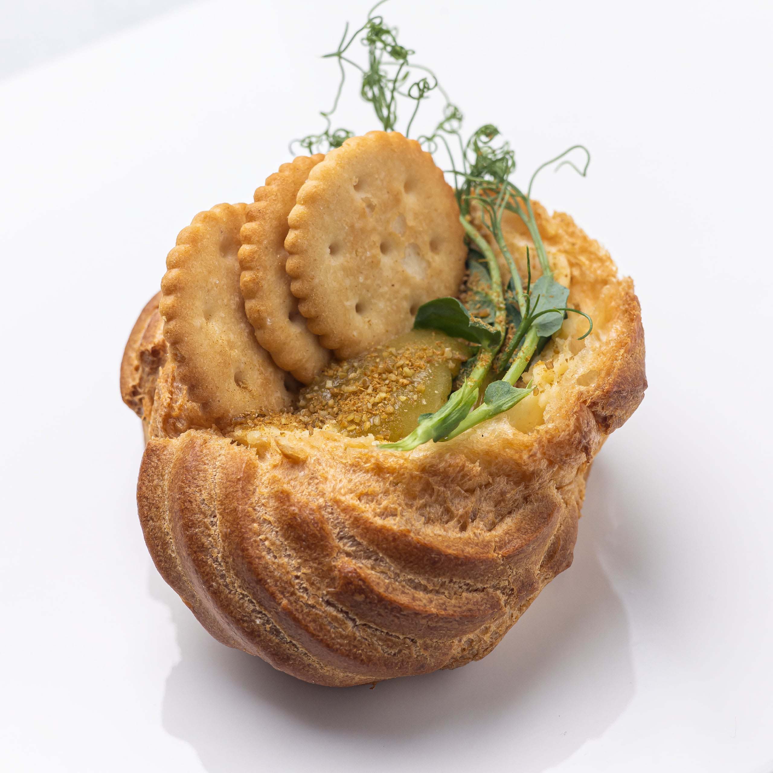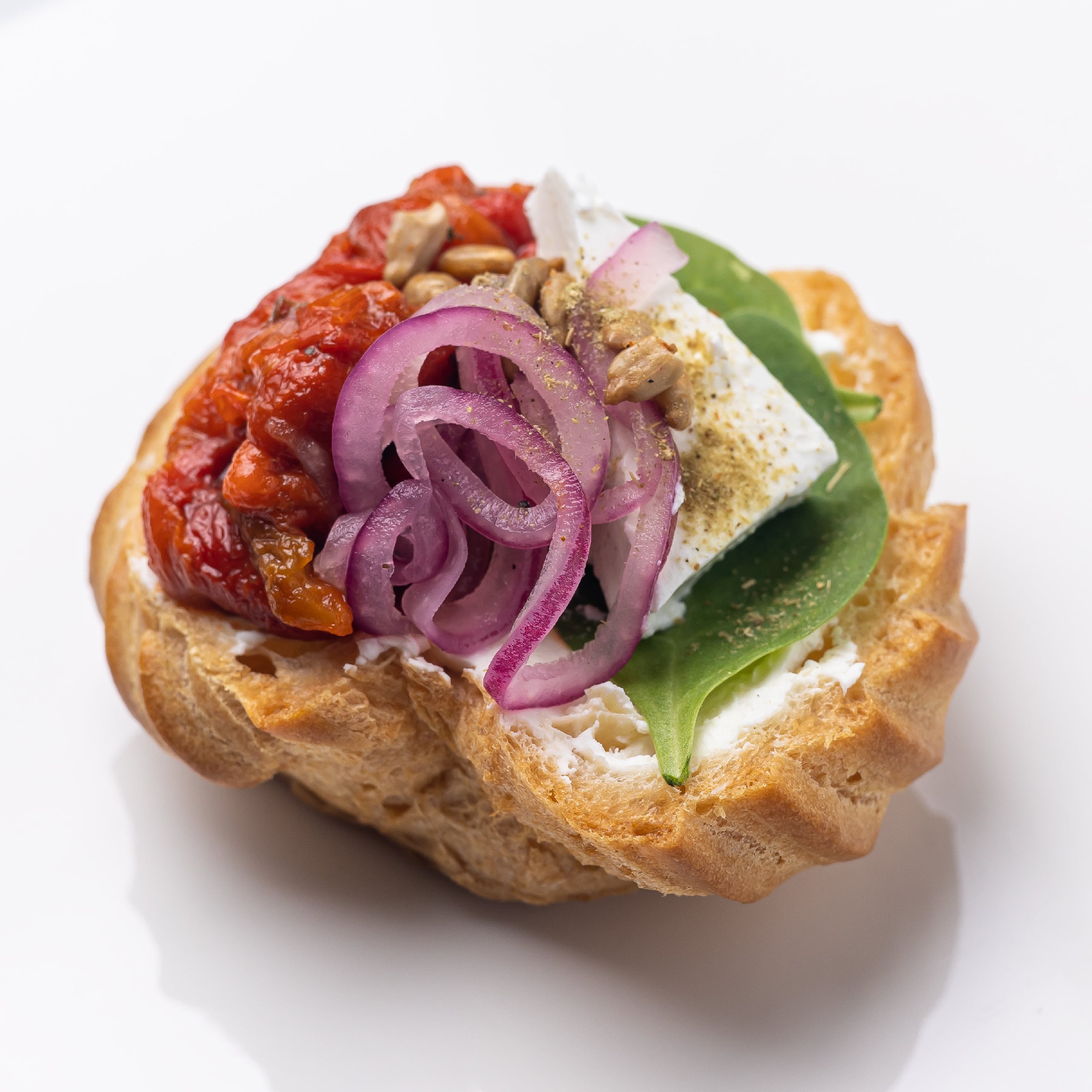 Профітроль з крем-сиром, печеним перцем, фетою та соленим насінням 8 шт × 60 г