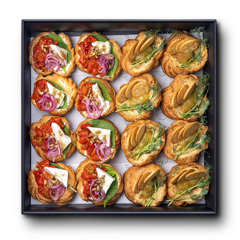 Це справжня знахідка для поціновувачів оригінальних та вишуканих закусок. Кожен профітроль у боксі подарує вам гармонію неповторних смакових поєднань. Цей набір ідеально підійде для вашого святкового столу, коктейльної вечірки чи просто для того, щоб подарувати собі хвилинку гастрономічного задоволення.